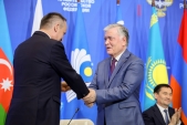В ходе заседания за большие заслуги в развитие сотрудничества в транспортной сфере Председатель КТС СНГ, Министр транспорта Российской Федерации Андрей Никитин вручил медаль «Почетный транспортник СНГ» заместителю Генерального секретаря СНГ Ильхому Нематову.
